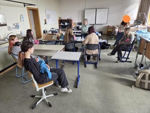 Im Unterricht setzten sich alle mit den Anforderungen, der Pflege und der Verantwortung rund um ein Baby auseinander.