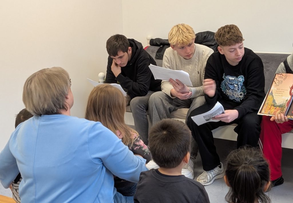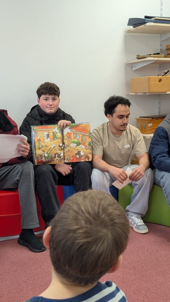 Vier Wochen lang wurde im Deutschunterricht geübt: laut, deutlich und in Ruhe vorzulesen. Sogar passende Fragen zu den Geschichten haben die Jugendlichen vorbereitet. Ein Highlight war das Buch „Lieselotte lauert“, in dem eine neugierige Kuh den Postboten erschrecken möchte.